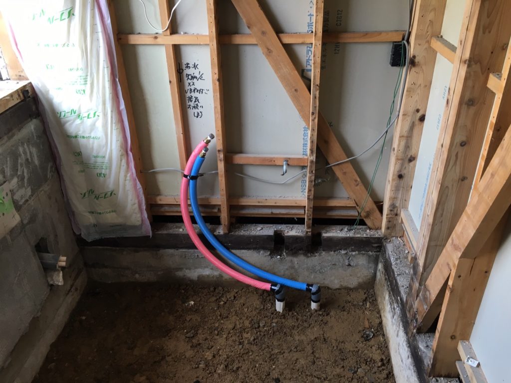 在来の給水・給湯・排水管の位置が替わる為、新たに配管移設を行います。