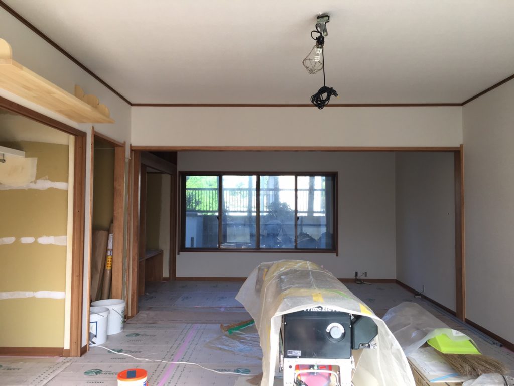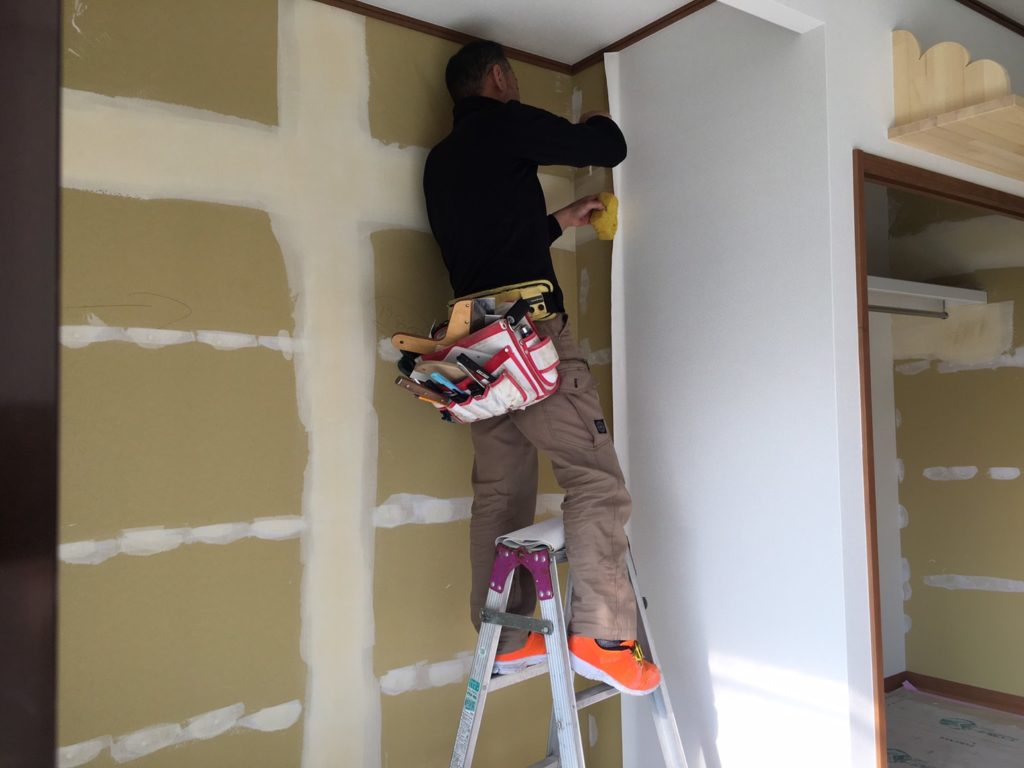 下地処理が終わり、クロスで仕上げていきます。