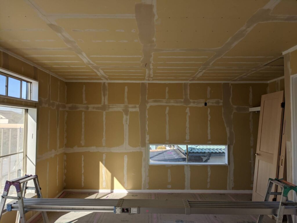 リビングは壁は漆喰(サンウォール)を採用、他の居室はクロスで仕上げました!