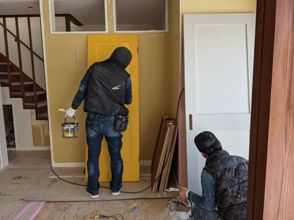 塗装工事:各所木部塗装、技建お馴染みの木製建具も塗装!