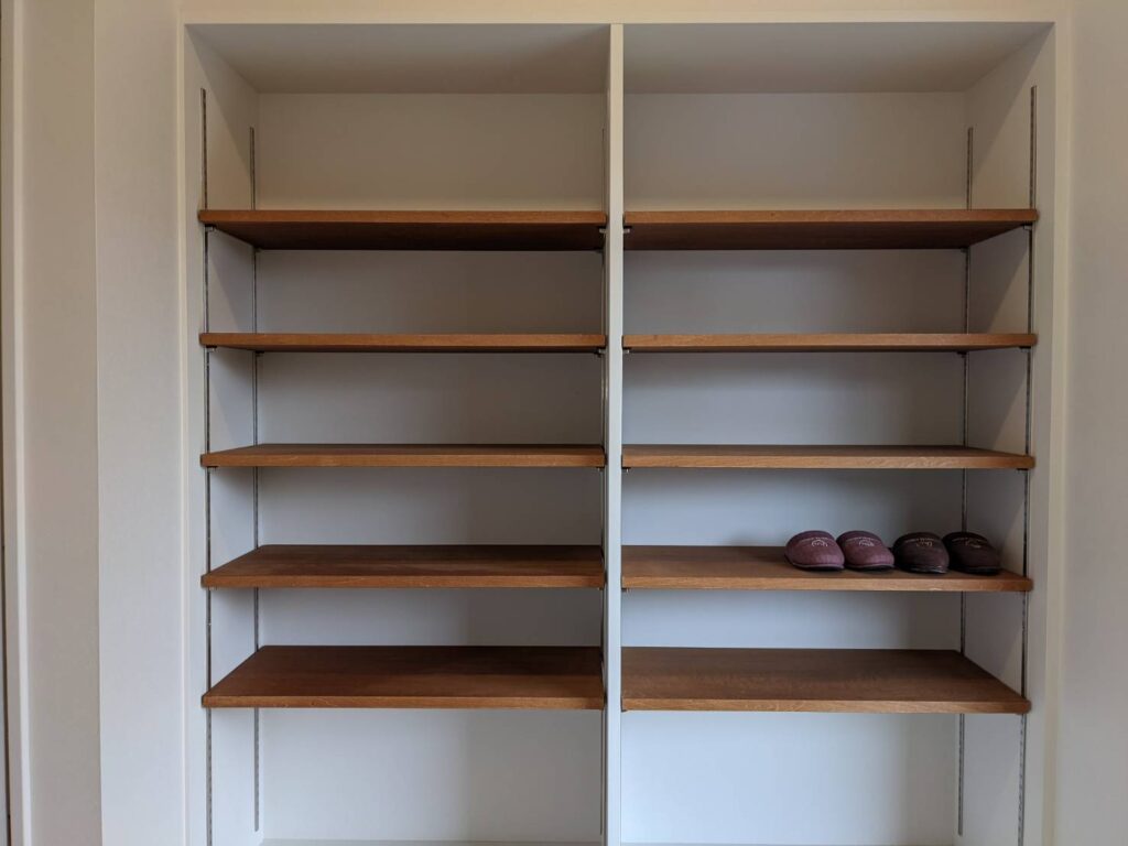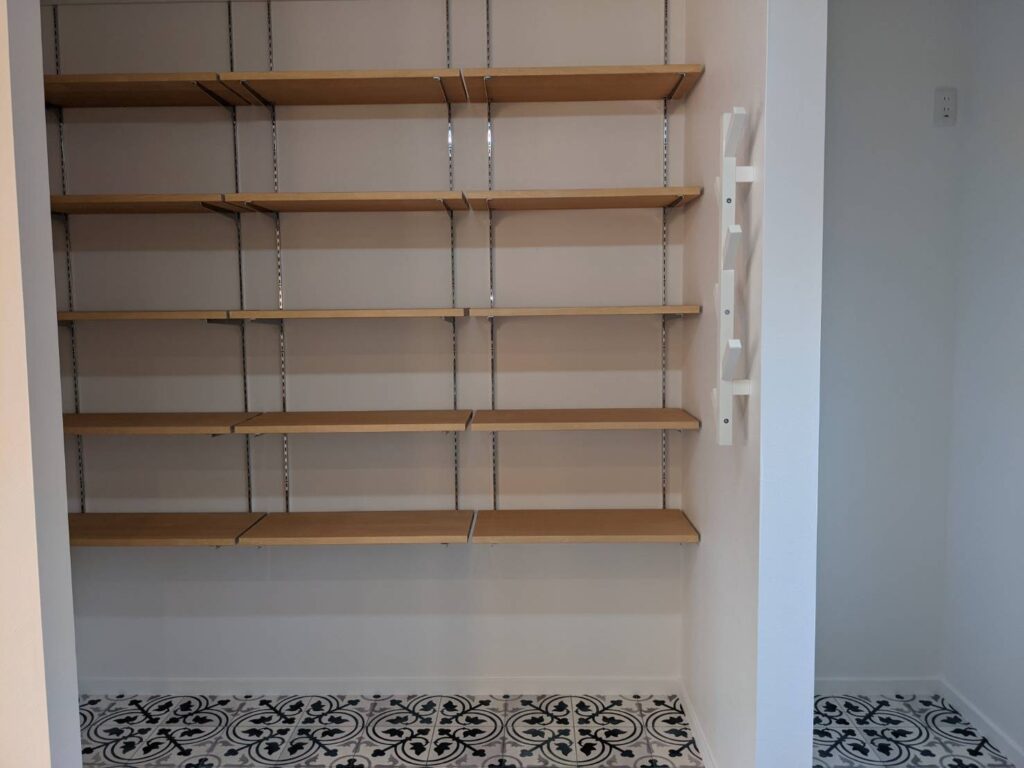 キッチンの対面には元々押入だったスペースにパントリー収納棚を設置。全て可動棚になっているのでなんでも収納できちゃいます!