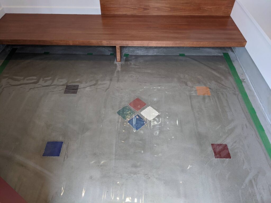 玄関に入り土間の仕上げはモルタルを打設。こちらもアクセントでタイルを埋めました!