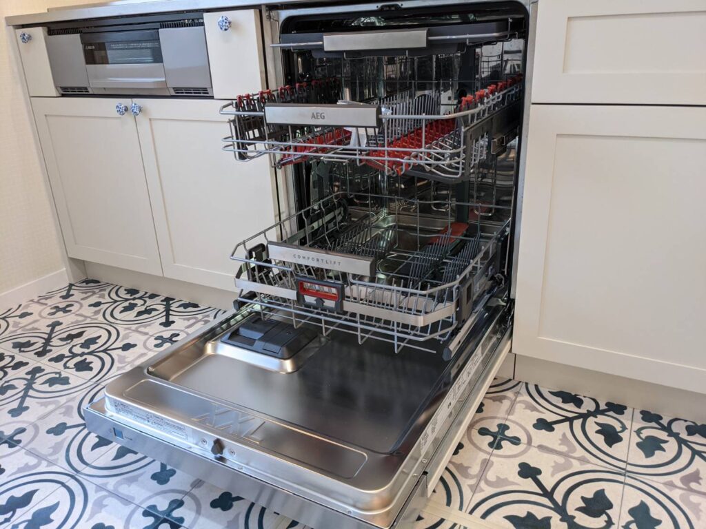 やはり木質扉はとにかくおしゃれ!食洗器は大容量のAEG食洗器(ドイツ製)お値段はそこそこですが、洗浄力や耐久性抜群!