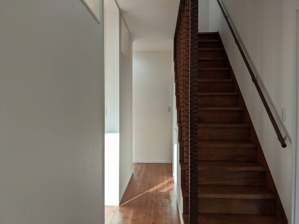 階段はそのまま残しました。天井は壁は明るさを確保するために白を基調としました。