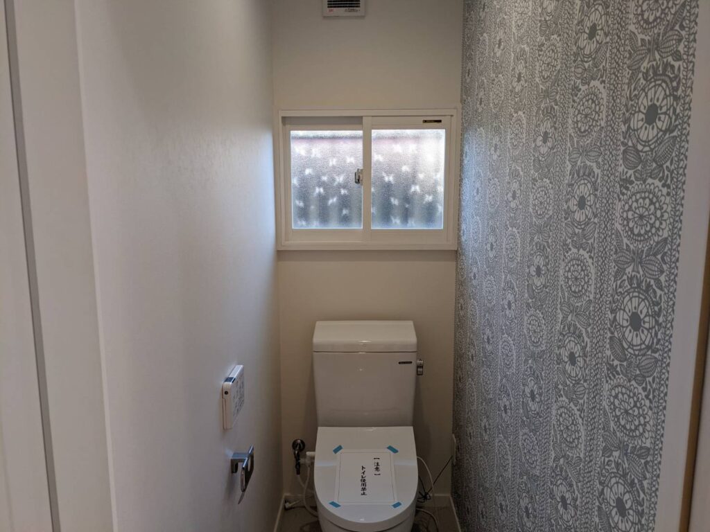 トイレもタカラスタンダードさんのティモニFシリーズを採用。継ぎ目が少なくお掃除楽々、スッキリとしたデザイン。節水タイプなので家計に優しい。