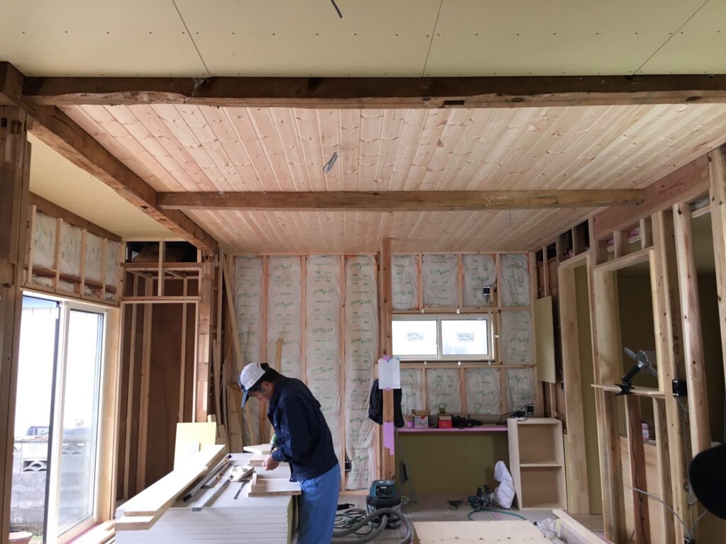 元々あった梁はとてもいい味を出していたのであえて見せる仕上がりに!